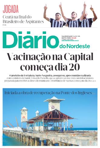 Li no Jornal Diário do Nordeste, de 15 de janeiro de 2021, 6a. feira, a seguinte manchete em capa: “Vacina – Governo planeja iniciar vacinação no dia 20”. Vacinação contra Covid em Fortaleza começa quarta (20); Sarto diz que Município está preparado. O prefeito de Fortaleza participou de reunião com o ministro da Saúde, Eduardo Pazzuelo; entre as solicitações feitas ao ministro, está a priorização de profissionais da educação nas fases previstas para vacinação